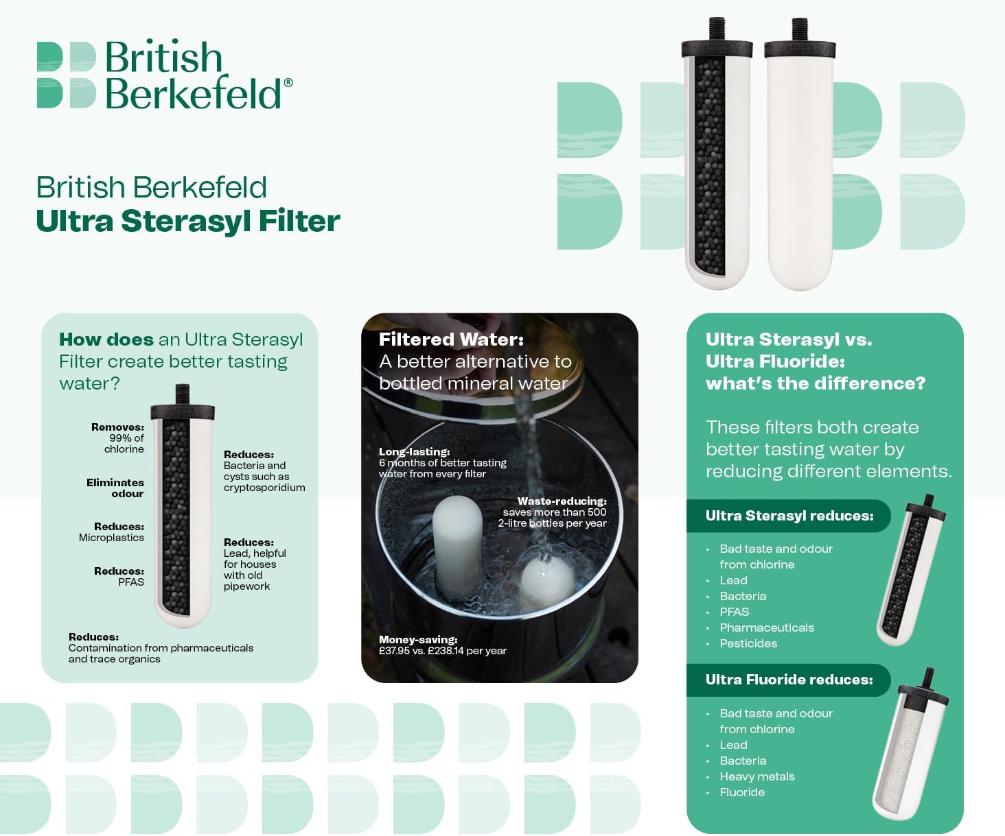 British Berkefeld® Ultra Sterasyl & Ultra Fluoride Ceramic Water Filters are engineered to fit and perform in virtually all leading gravity-fed systems.